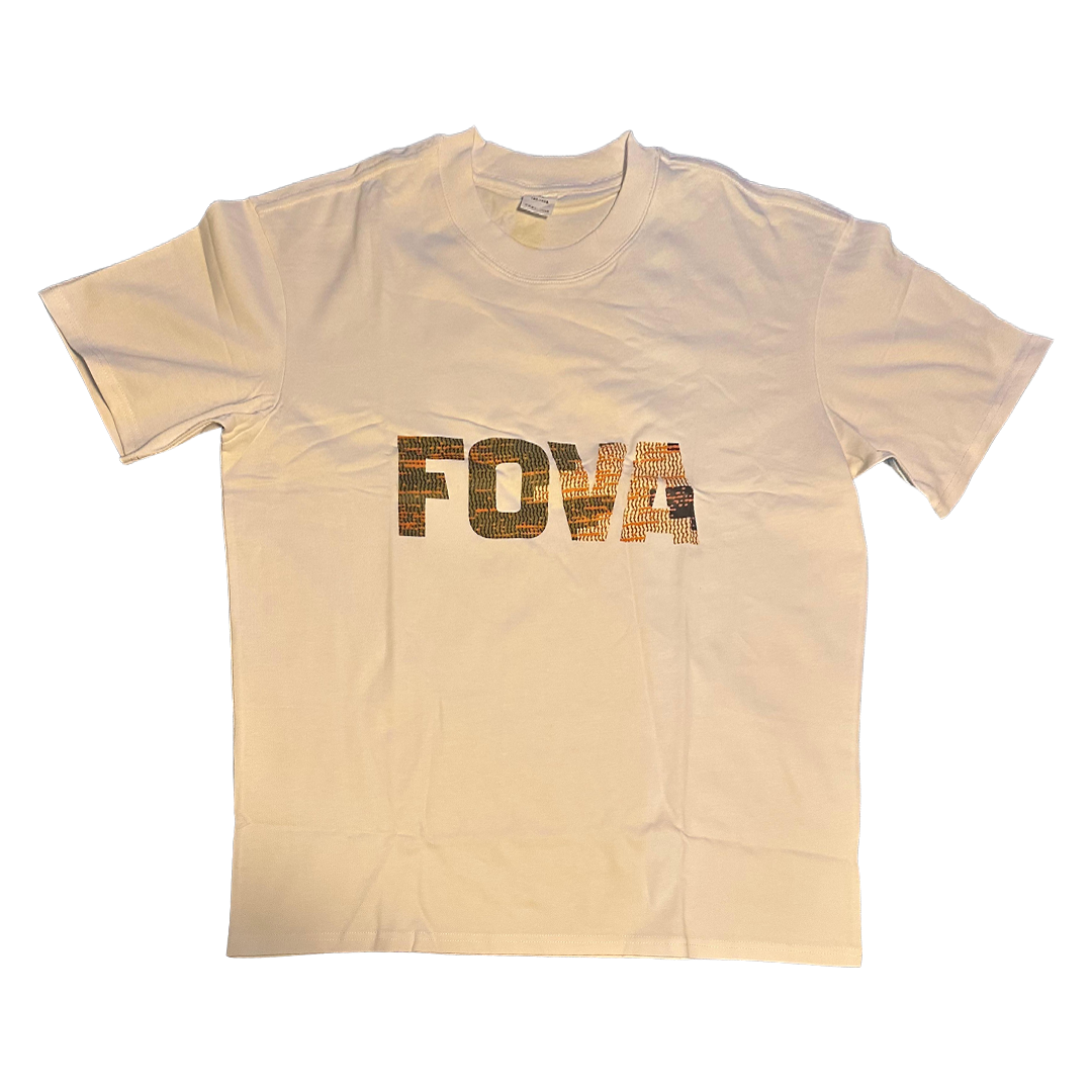 Minimal beige T-shirt with a straightforward FOVA design.